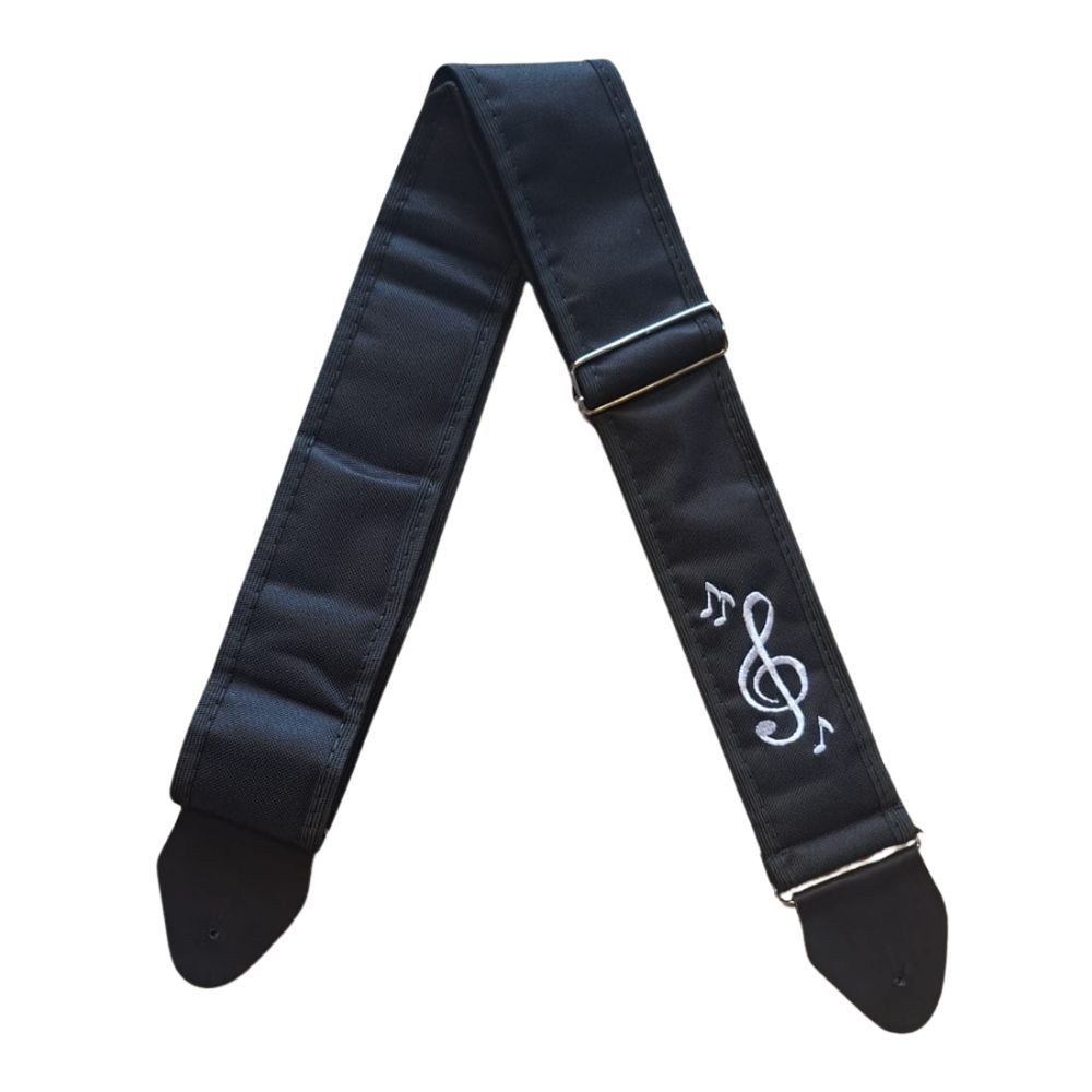 Com regulagem de comprimento, adapta-se facilmente a diferentes alturas e preferências, garantindo praticidade e firmeza durante ensaios e apresentações. Além de funcional, o detalhe bordado valoriza o instrumento e transmite personalidade ao músico.