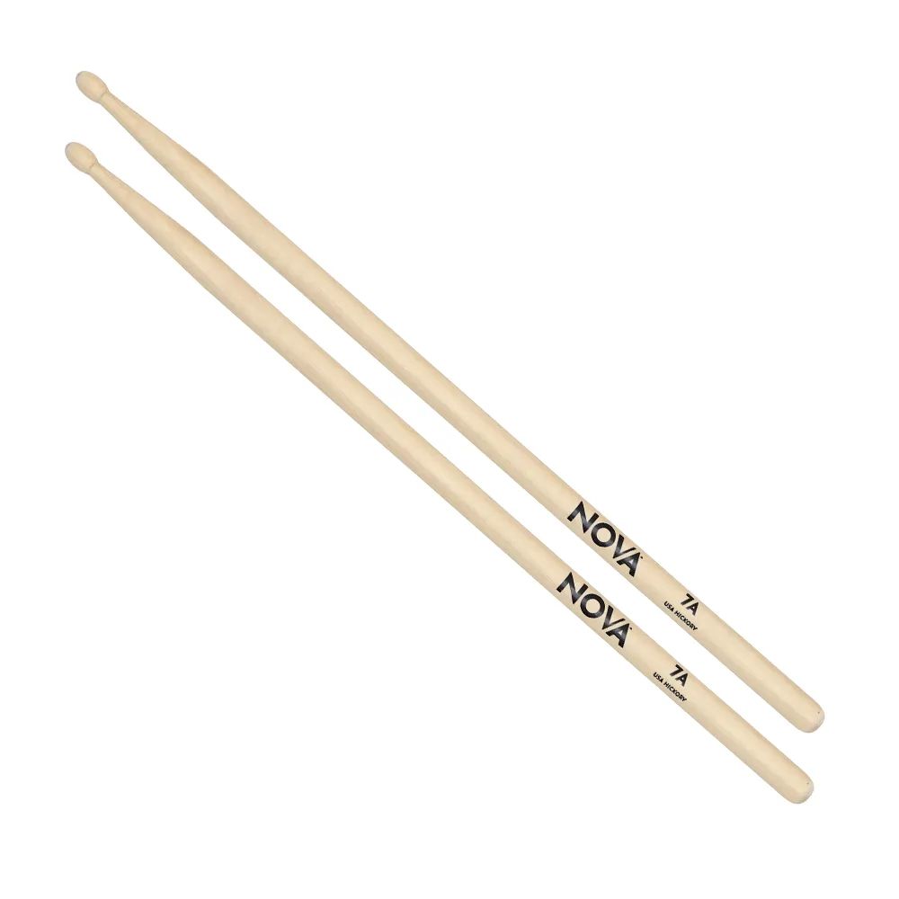 Baqueta Nova 7A Ponta de Madeira by Vic Firth A marca NOVA é a linha econômica da Vic Firth, possui os tamanhos tradicionais da marca, com ponta em formato de Gota nos modelos Nylon e madeira. Foi desenvolvida para atender todas as demandas dos músicos, sejam elas musicais ou financeiras. Perfeita para jazz, música instrumental e qualquer situação que necessite de um toque rápido, leve e preciso. - Diâmetro: 1,37cm (0,54”) - Comprimento: 39,37cm (15,5”) - Material: Hickory - Ponta: Madeira em formato de Gota (triangular arredondada) - Acabamento: Natural