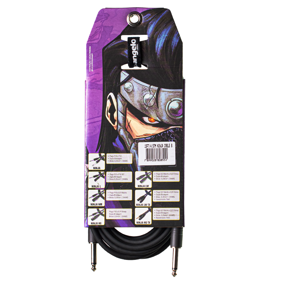 É um cabo para instrumentos musicais e interligação de equipamentos de áudio da linha Ninja, da marca brasileira Santo Angelo. Ideal para guitarras, baixos, ou qualquer instrumento com saída P10, também serve para ligar pedais ou conectar em amplificadores/pedaisessórias com entrada P10. Mede 0,91 metro (aproximadamente 3 pés)