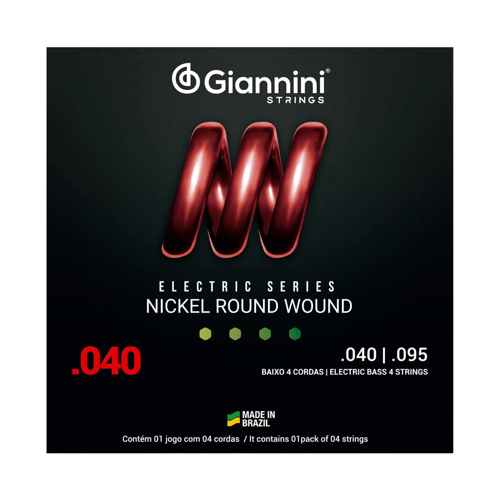 A série Electric traz toda a sonoridade dos encordoamentos Giannini para a sua guitarra e contra-baixo. O encordoamento para baixo 04 cordas Giannini GEEBRL é composto de um núcleo de aço revestido por Níquel. O Níquel produz um som brilhante e agressivo que atende uma grande variedades de estilos musicais, sendo bem resistente a oxidação e corrosão.