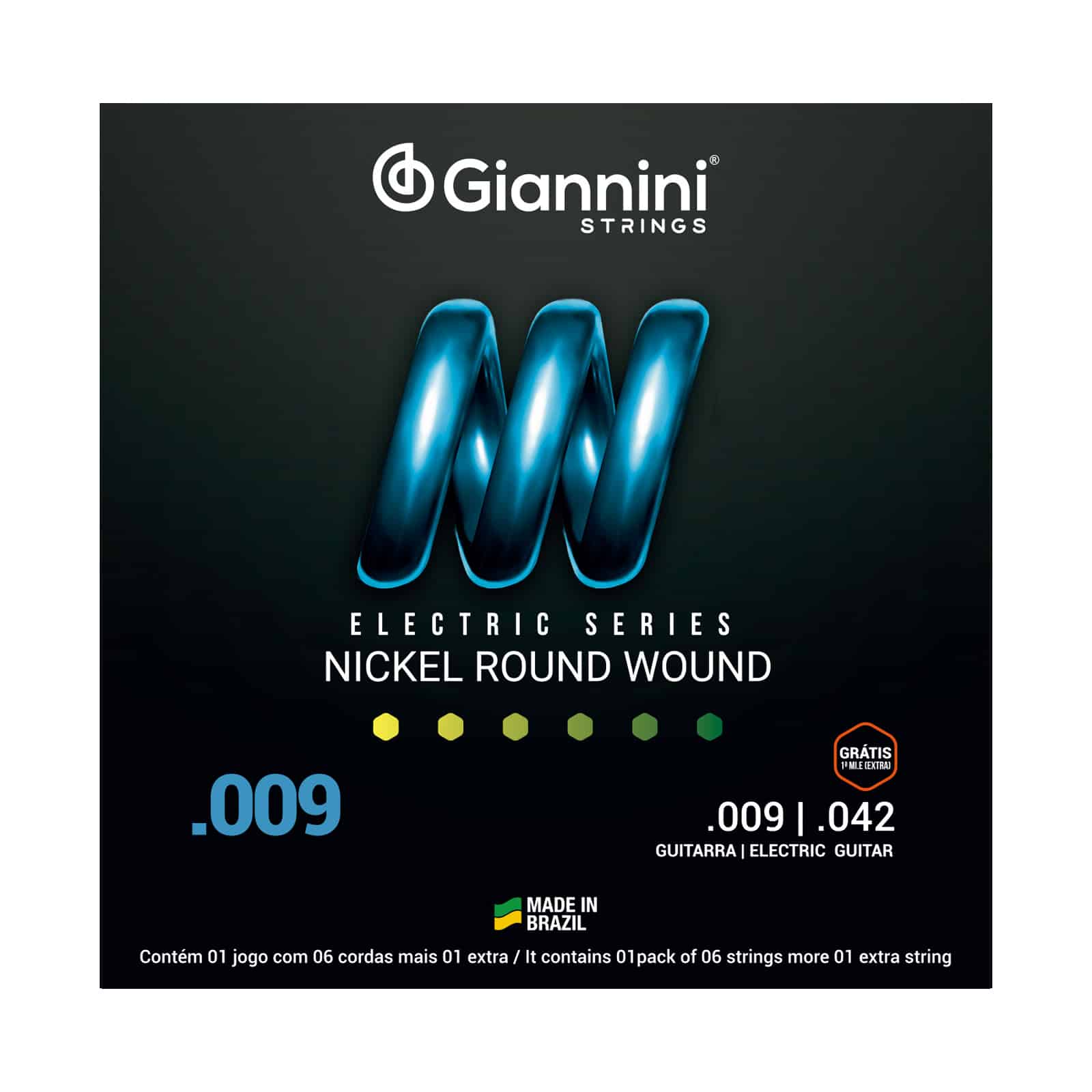 A série Electric traz toda a sonoridade dos encordoamentos Giannini para a sua guitarra e contra-baixo. O encordoamento para guitarra Giannini GEEGST09 é composto de um núcleo de aço revestido por Níquel, produz um som brilhante e agressivo que atende uma grande variedades de estilos musicais, sendo bem resistente a oxidação e corrosão.