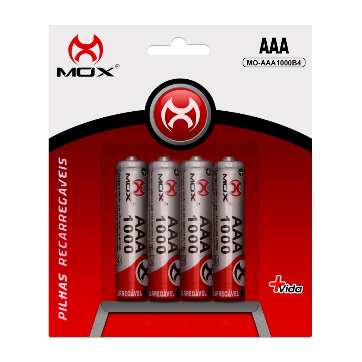 Pilha Recarregável MOX AAA 1.2V 900mAh – Cartela com 4 Unidades