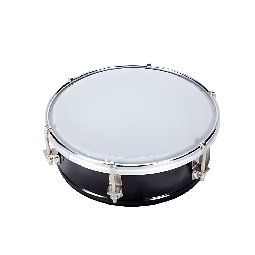 A pele leitosa proporciona som limpo e estalado, garantindo boa resposta mesmo com leves toques. O acabamento preto confere um visual moderno e profissional, combinando com qualquer conjunto de percussão.